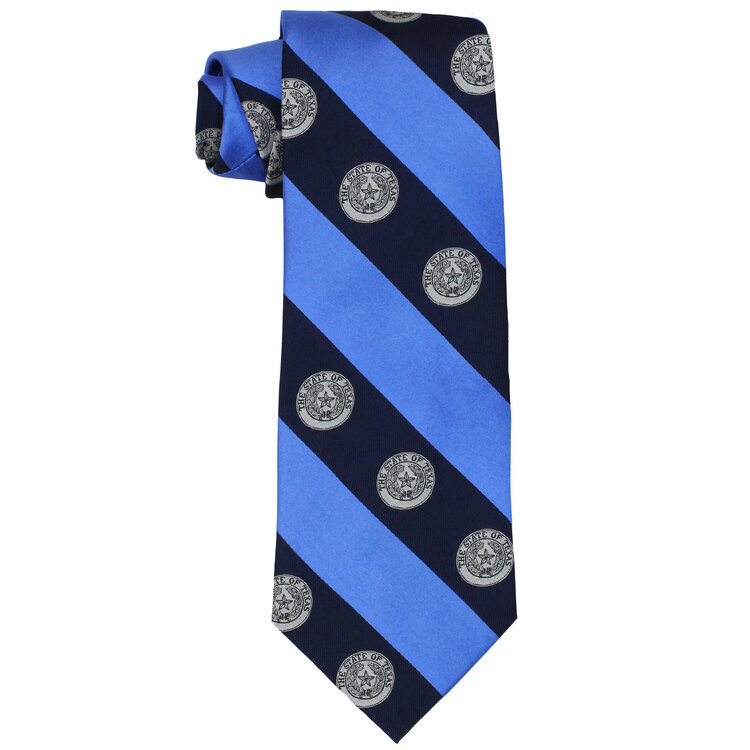 Texas State Seal Blue Striped Silk Tie