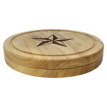 This round parawood cheese board is engraved with a Texas star and includes a hidden swivel drawer with serving tools. Both functional and decorative, its perfect for entertaining with Texas flair.
