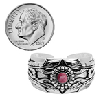 Inspired by blooming desert wildflowers, this adjustable silver ring features a deep purple center stone surrounded by petal-like engravings, which adds depth and charm to the piece. It is a bold yet wearable piece, perfect for making a statement rooted in nature. Stone color may vary.